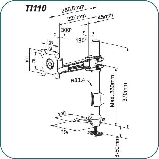 Aavara POS Series TI110 - Befestigungskit (Tischplattenbohrung, Schwenkarm) - ExperTorque - für LCD-Display - Aluminiumlegierung - Bildschirmgröße: 38.1-61 cm (15"-24") - Schreibtisch