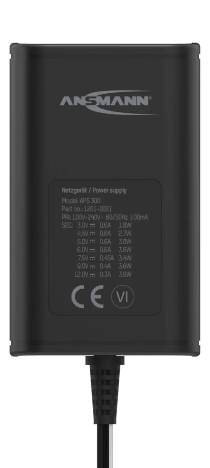 | Beschreibung | Ansmann APS 300 - Netzteil - 3.6 Watt - 0.6 A (Gleichstromstecker) Schwarz | |||