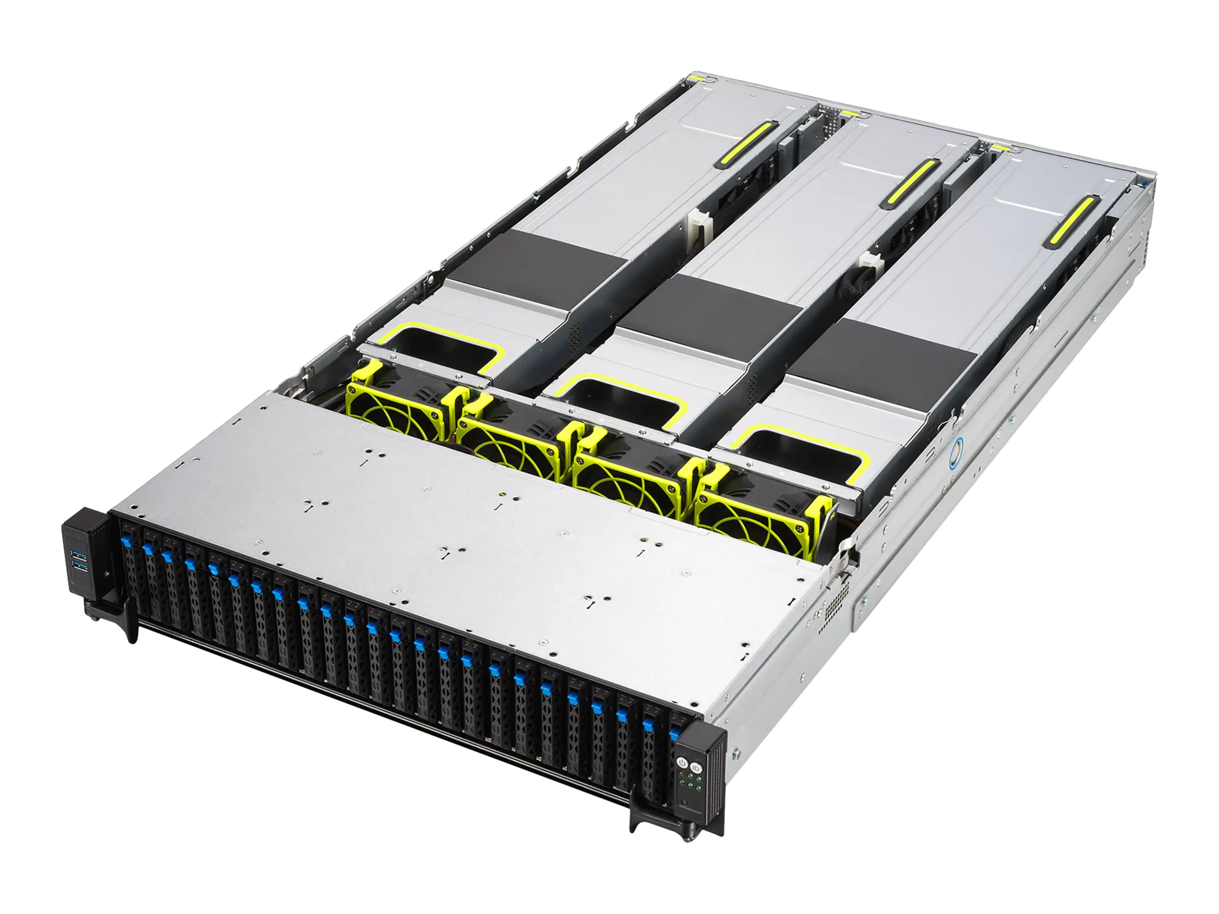 - Bis zu 24 All-Flash-NVMe-Laufwerke auf der Vorderseite für umfangreichen Speicher und hohe Durchsatzleistung