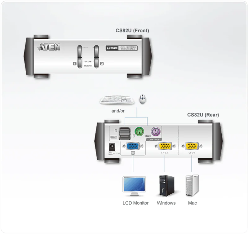 ATEN CS82U - KVM-Switch - 2 x KVM port(s) - 1 lokaler Benutzer - Desktop
