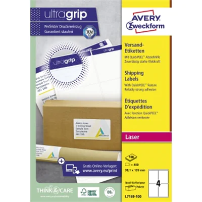 Dank der innovativen ultragrip-Technologie können Sie sich auf einen ultrapräzisen Druckereinzug und absolut staufreien Druckerdurchlauf verlassen. QCT-Sicherheitskante verhindert Klebstoffablagerungen im Drucker. Gestalten und drucken Sie Ihre Adressaufkleber schnell und einfach - mit den kostenlosen Avery Zweckform Etiketten-Vorlagen und Software-Lösungen unter www.avery.eu/print oder den im Microsoft® Office Paket integrierten Basis-Vorlagen. Schnelles Bearbeiten und Versenden von Briefen - durch einfaches Abziehen und Aufkleben der Adress-Etiketten mit der einzigartigen QuickPEEL-Abziehhilfe