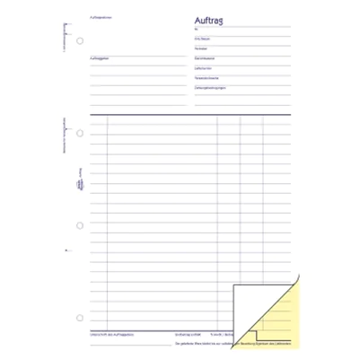 Der Auftrag von AVERY ZWECKFORM bietet Ihnen die Möglichkeit, alle nötigen Angaben bei der Vergabe von Aufträgen abzudecken und auf das vorgedruckte Auftragsformular einzutragen. Die insgesamt Aufträge haben einen Schreibmaschinen gerechten Zeilenabstand und sind mit einer Unterschriftzeile für Auftraggeber versehen. Die Auftragsformulare, Bestellvorlagen und Rechnungsvordrucke von Avery Zweckform sind zuverlässige, bewährte Hilfen für Ihre Warenwirtschaft, Buchhaltung und Steuer und werden regelmäßig von Rechtsexperten geprüft.