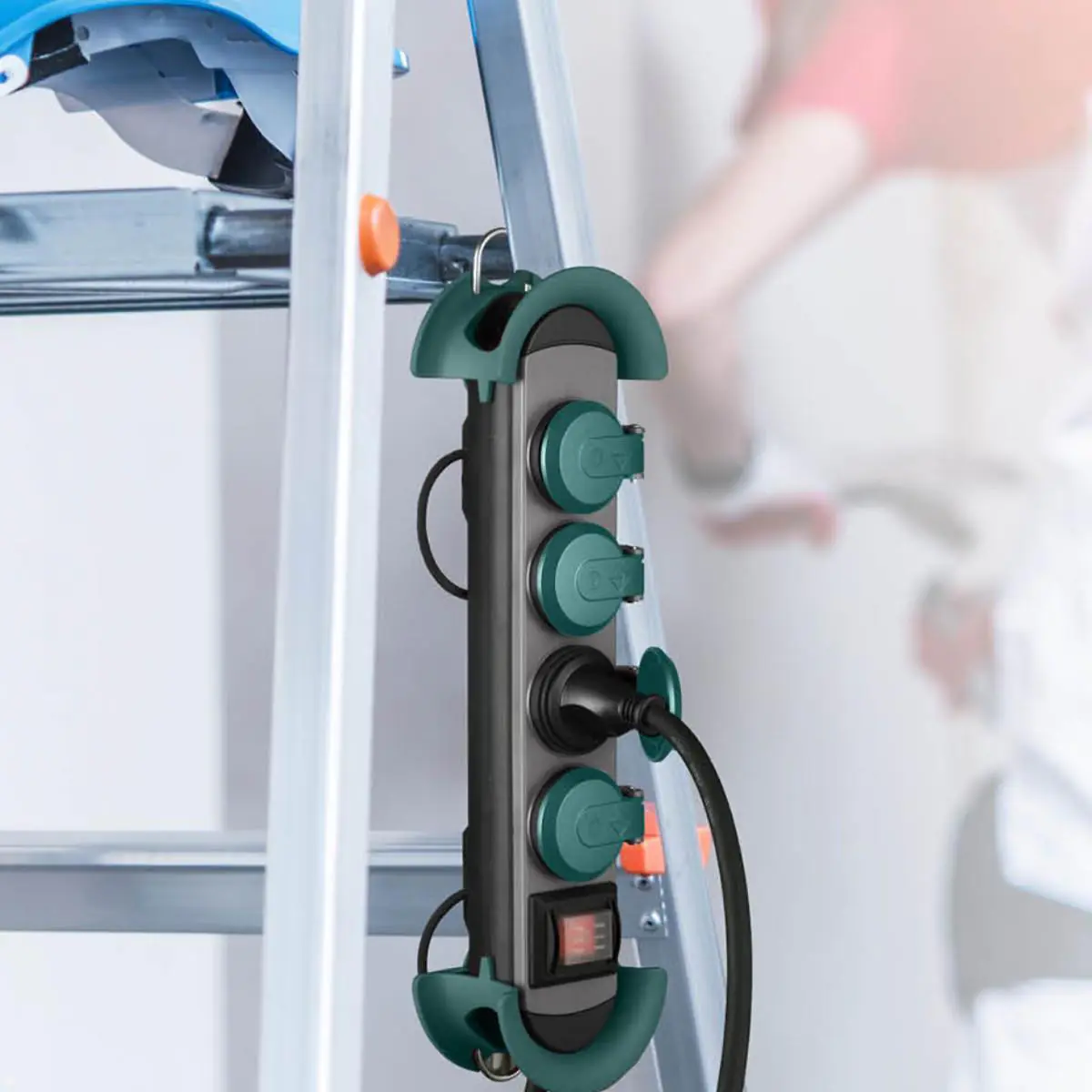 Die zuverlässige Mehrfachsteckdose wird dank unzähliger Befestigungsmöglichkeiten, wie einem integrierten Haken, ganz ohne Werkzeug an Wände, Leitern, Schnüren, oder Ketten angebracht - eben dort, wo sie gebraucht wird. Spontaner Arbeitsplatzwechsel? Kein Problem mit der HOOK! Die flexible Verteilerleiste kann einfach in die neue Arbeitsumgebung integriert werden. Und nach Feierabend lässt sie sich dank der runden Endkappen zur Kabelaufwicklung sowie den elastischen Schleifen für das Kabelmanagement praktisch aufwickeln und kann trotz vier Meter Leitungslänge kinderleicht im Werkzeugkoffer verstaut werden.