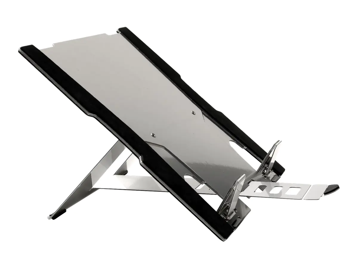 Sie sind unterwegs und haben Ihren Laptop, Ihre kompakte Tastatur und Ihre Maus dabei. Aber trotzdem müssen Sie den Nacken beugen, um den Bildschirm zu sehen. Mit dem kompakten und leichten Laptophalter FlexTop 270 entfällt das. Dieser Ständer sorgt dafür, dass der Bildschirm Ihres Laptops sich auf der richtigen Höhe befindet. Ihr Laptop passt problemlos auf diesen Laptophalter. Sie haben die Möglichkeit, den FlexTop 270 an Ihrem Laptop zu befestigen. Wenn Sie das nicht möchten, gibt es auch zwei Stützen für den Laptop. Dank seiner kompakten Form passt er, zusammengeklappt, in jede Laptoptasche. Die Bedienung ist einfach. Dank der Einstellzunge können Sie die Bildschirmhöhe und den Abstand zu den Augen regulieren.