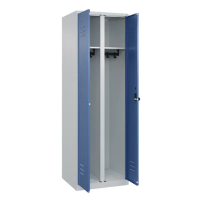 C+P Kleiderspind Classic PLUS 600 x 1.850 x 500 mm (B x H x T) 2 Abteile Stahl Farbe der Front: fernblau Farbe des Korpus: lichtgrau