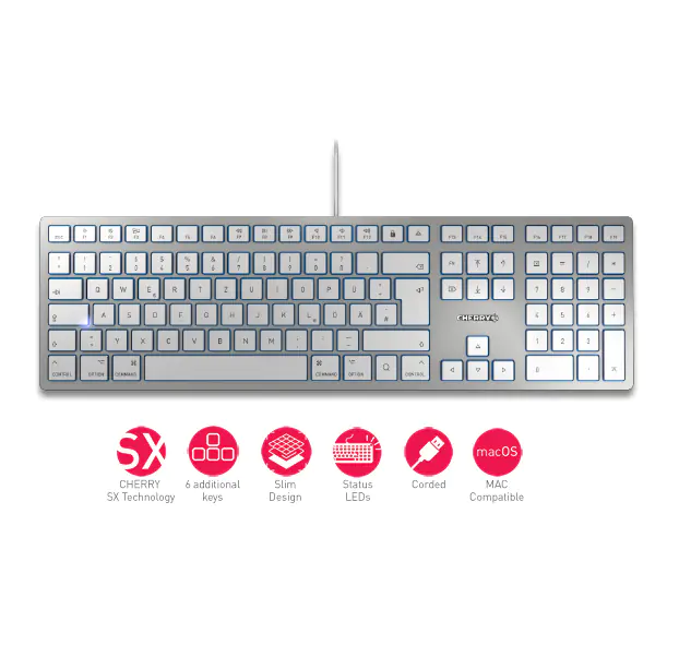 CHERRY KC 6000 SLIM FOR MAC - Tastatur - USB - Deutsch - Tastenschalter: CHERRY SX - Silber