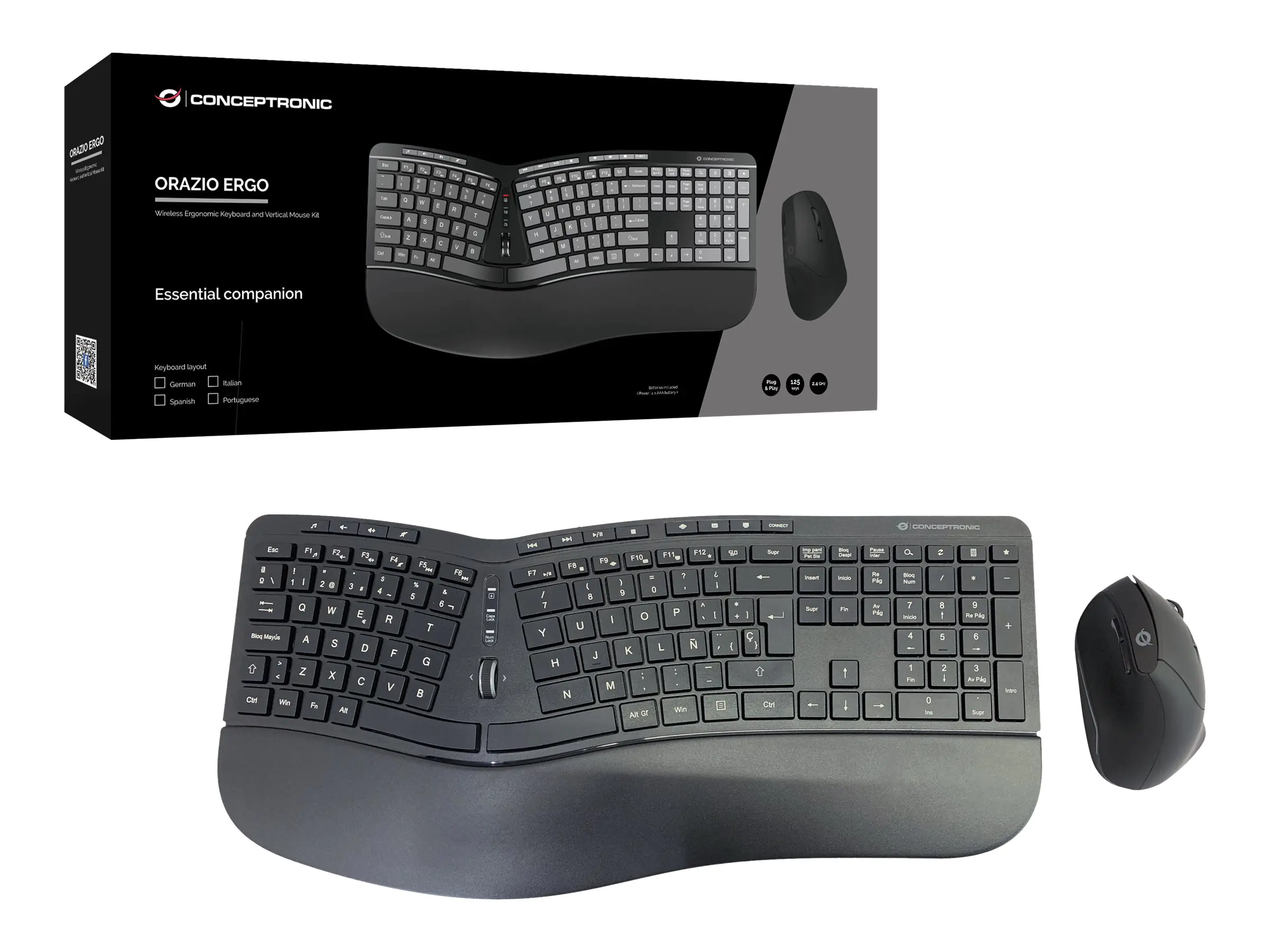 Conceptronic ORAZIO02ES ERGO - Tastatur-und-Maus-Set - kabellos - 2.4 GHz - Spanisch - Schwarz