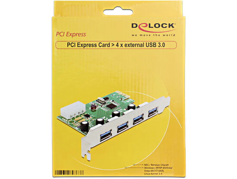 | Produktbeschreibung | Delock PCI Express Card > 4 x external USB 3.0 - USB-Adapter - PCIe 2.0 - USB 3.0 x 4 | |||