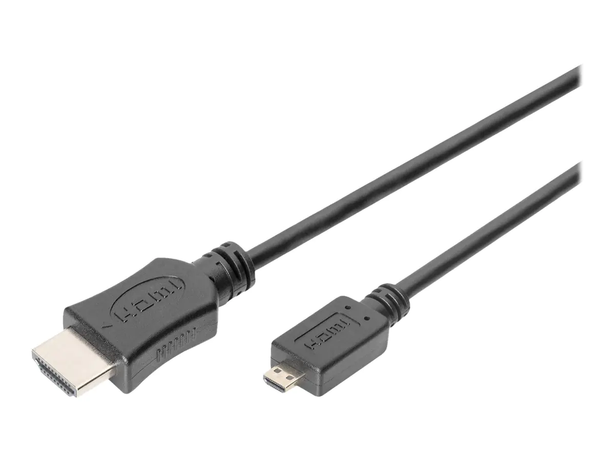 | DIGITUS Highspeed - HDMI-Kabel mit Ethernet - HDMI männlich zu mikro HDMI männlich - 2 m - Dreifachisolierung - Schwarz - unterstützt 4K 30 Hz (4096 x 2160) | ||||