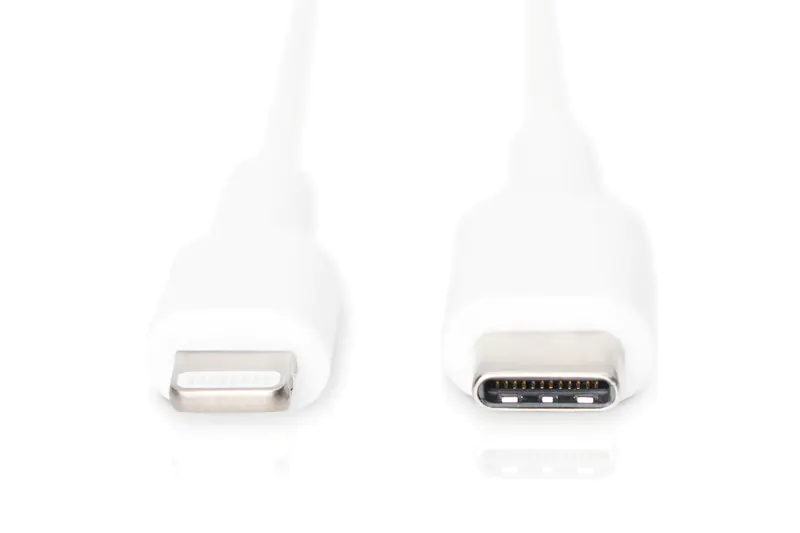 | Beschreibung | DIGITUS Lightning-Kabel - USB-C männlich zu Lightning männlich - 1 m - Doppelisolierung - weiß - geformt, USB-Stromversorgung (18 W) für Apple iPad/iPhone/iPod (Lightning) | |||