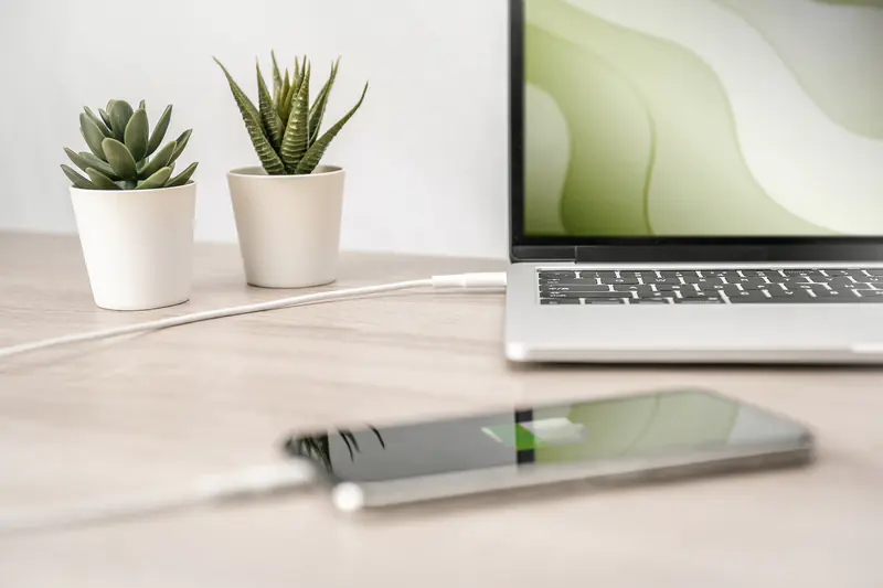 - Zur Synchronisierung und Datenübertragung ermöglicht das Kabel eine Übertragungsrate von bis zu 480 Mbit/s