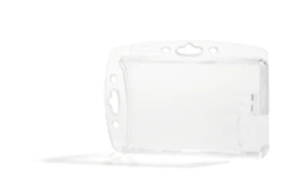 Kombinierbar mit Clip, Kette, Textilband oder Ausweisjojo. Optimale Lesbarkeit und einfaches Scannen von Barcodes. Kartenhalter wahlweise im Hoch- oder Querformat nutzbar.
