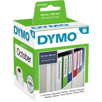DYMO LabelWriter LAF Labels Large - Schwarz auf Weiß - 59 x 190 mm 110 Etikett(en) (1 Rolle(n) x 110) Ordneretiketten - für DYMO LabelWriter 310, 315, 320, 330, 400, 450, 4XL, SE450, Wireless