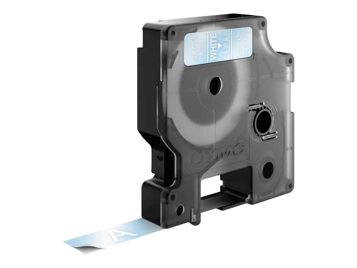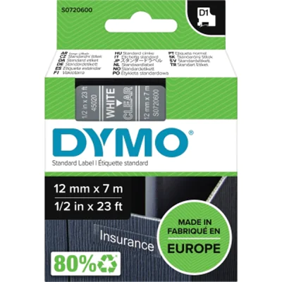 DYMO D1 - Selbstklebend - White on Transparent - Rolle (1,2 cm x 7 m) 1 Kassette(n) Etikettenband - für LabelMANAGER 160, 210D, 210D Kit, 210D Kit Case, 280, 360D, 420P, 420P Kit, 500TS, PnP