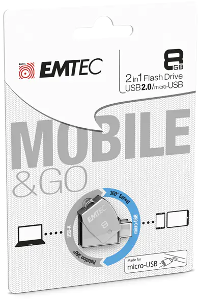 EMTEC T250B - 8 GB - USB Type-A / Micro-USB - 2.0 - Drehring - Edelstahl