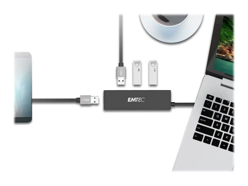 EMTEC Ultra Slim USB3.1 4-Port Hub T620A - Hub - 4 x USB 3.1 Gen 1 - Desktop