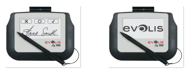 Anhand der Signature-Pads Sig100 können Sie über einen Evolis-Kartendrucker und einen Computer die Unterschrift direkt in das Design der Karte einfügen und somit das Sicherheitsniveau Letzterer erhöhen.