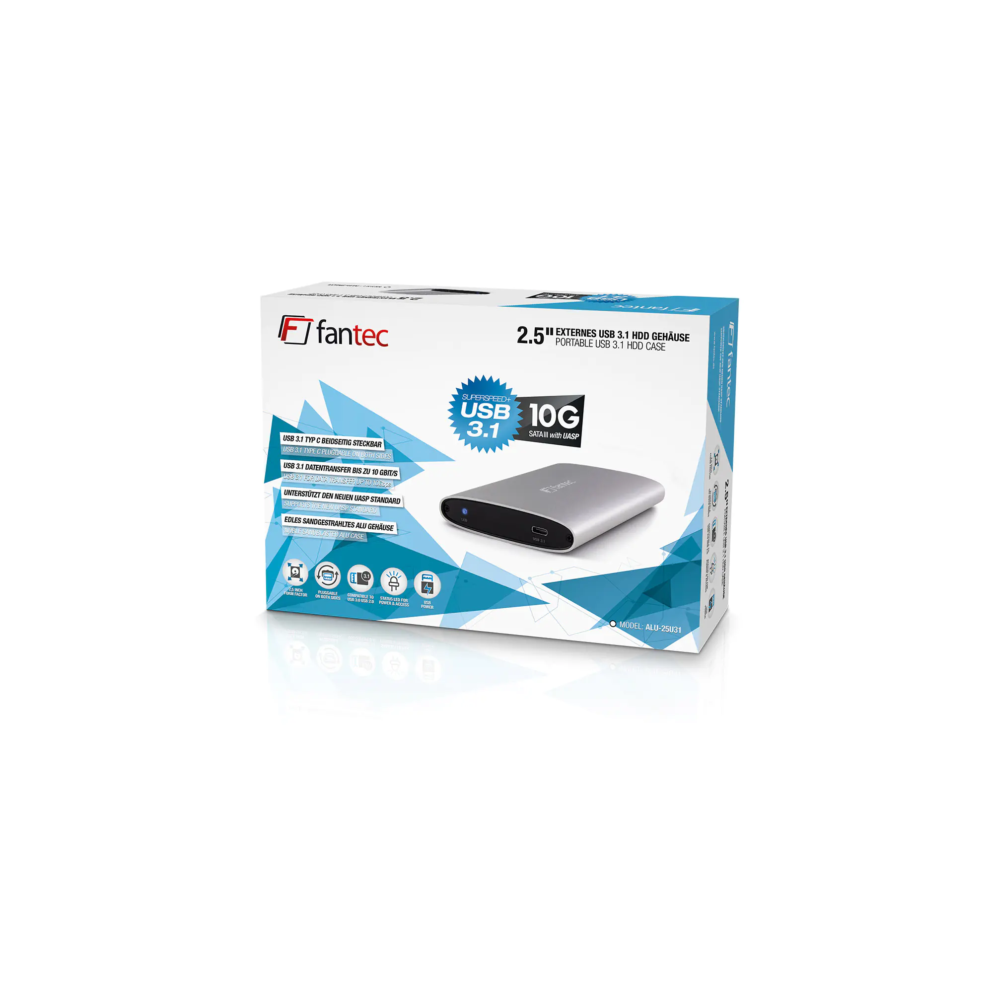 | Produktbeschreibung | FANTEC ALU-25U31 - Speichergehäuse - SATA 6Gb/s - USB 3.1 (Gen 2) | |||