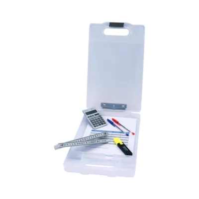 Klemmbrett mit großem Aufbewahrungsfach für den professionellen Einsatz. Das große Aufbewahrungsfach mit einer Füllhöhe von 34 mm dient als Organizer und bietet viel Platz und Schutz für Tablet, Handy, Formulare, weitere Papiere, Taschenrechner etc. Separate Fächer im Inneren dienen als Kleinteile-Box zur Aufbewahrung von z.B. Kugelschreiber, Bleistifte, Büroklammern etc. Der Clip im Griff verschließt das gesamte Aufbewahrungsfach.
