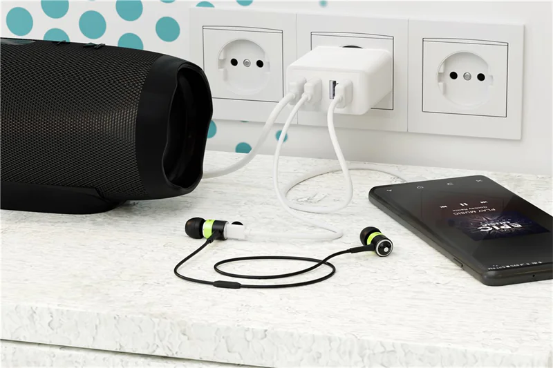 - Jeder Zeit genügend Anschlüsse. Lädt bis zu 4 Geräte gleichzeitig über USB-A