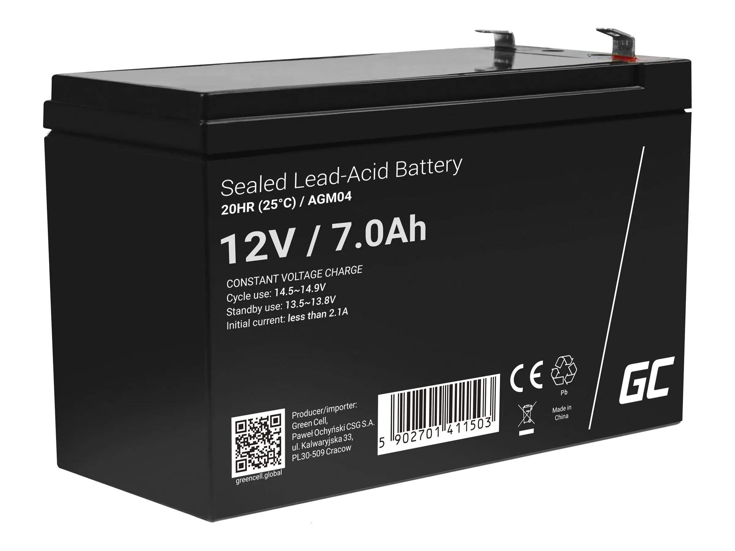 Green Cell - USV-Akku - 1 x Batterie - Sealed Lead Acid (SLA) - 7 Ah - Schwarz