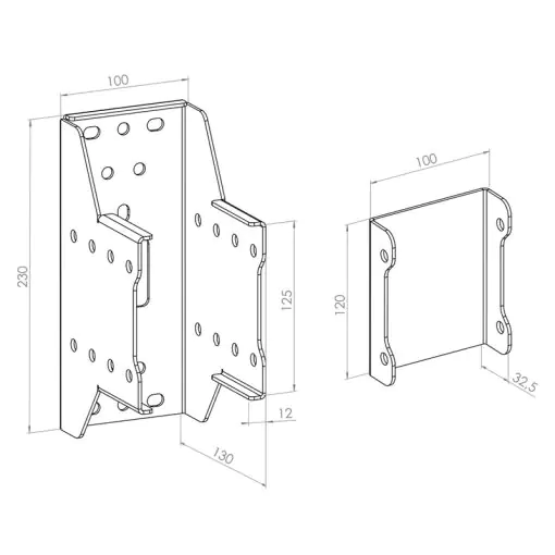 - Ermöglicht eine Installation von zwei CPS-Alu Rails von der Wand in den Raum (Back to Back)