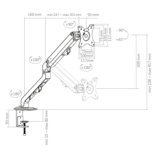 - ±180° drehbar (Tragarm)