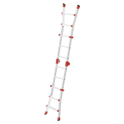 Verwendbar als Anlege- und Schiebeleiter, beidseitige Steh- und Treppenleiter. Höhe einstellbar durch die seitlichen Blockiergriffe der einzelnen Niveaus. 2 Sicherheitsgelenke (ent- und verriegelbar) für die Einstellung in Steh- und Anlegeleiter. Sicher, flexibel, variabel. Automatisches Blockiersystem. Sprosse für Sprosse höhenverstellbar. Verwendbar als Anlege- und Schiebeleiter, beidseitige Steh- und Treppenleiter. Höhe einstellbar durch die seitlichen Blockiergriffe der einzelnen Niveaus. 2 Sicherheitsgelenke (ent- und verriegelbar) für die Einstellung in Steh- und Anlegeleiter. Sicher, flexibel, variabel. Automatisches Blockiersystem. Sprosse für Sprosse höhenverstellbar.