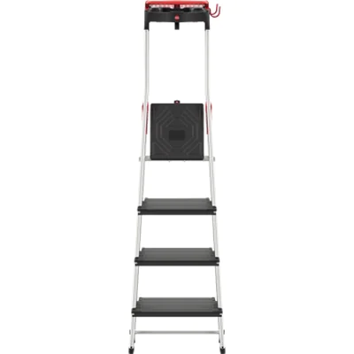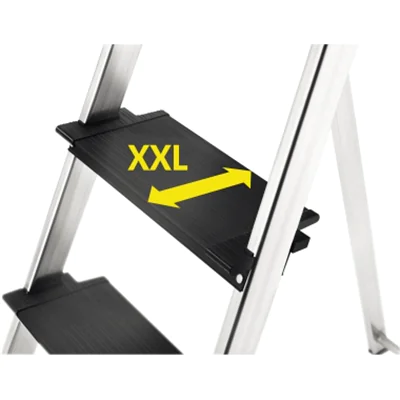 Plattformverriegelung für sicheres Ver- und Entriegeln. Ausziehbarer Sicherheits-Haltebügel zum Festhalten beim Arbeiten auf der Plattform. Multifunktions-Ablageschale zur Ablage von Werkzeugen, Farbdosen oder Kleinteilen. Eimerschlaufe mit Klick-Schnellverschluss zur sicheren Befestigung von Eimern, Staubsaugern oder Kabeltrommeln. Universalhaken als Halterung für Heckenscheren, Putzmittel oder Malerrollen. Stabhalter als Halterung für Besen oder Pflücker. Sichere, HighTech-vernietete Holm-Stufenverbindung. Rutschsicherer Steckfuß. Schwarze XXL-Alu-Stufen mit Anti-Rutsch-Riffelung und extra tiefer Standfläche. Verzinkte, schwarze Stahl-Plattform mit Anti-Rutsch-Riffelung. Für den privaten und gewerblichen Gebrauch geeignet.