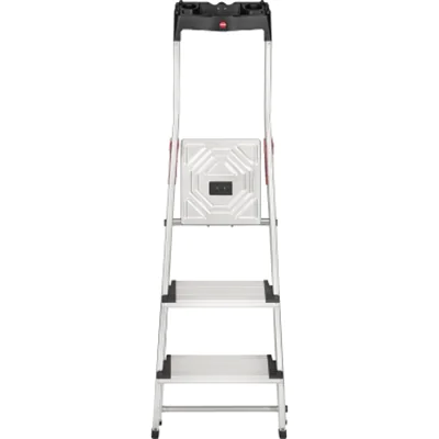 Rutschsicherer Steckfuß. Multifunktions-Ablageschale zur Ablage von Werkzeugen, Farbdosen oder Kleinteilen. Eimerschlaufe mit Klick-Schnellverschluss zur sicheren Befestigung von Eimern, Staubsaugern oder Kabeltrommeln. Platzsparend zusammengeklappt durch Parkbucht in den Stufen. Geeignet für Hailo EasyClix Wechselfüße (optionales Zubehör). XXL-Alu-Stufen mit Anti-Rutsch-Riffelung und extra tiefer Standfläche. Verzinkte Stahl-Plattform mit Anti-Rutsch-Riffelung. Mehr Kniefreiheit durch parallele Holme. Sichere HighTech-vernietete Holm-Stufenverbindung. Für den privaten und gewerblichen Gebrauch geeignet.