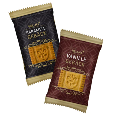 Mit HELLMA Edles Gebäck bieten wir leckere, portionierte Kekse an. Die Kekse mit königlichem Emblem sind einzeln verpackt und machen sich hervorragend als Kaffee-Beigabe oder Betthupferl im Hotelzimmer.