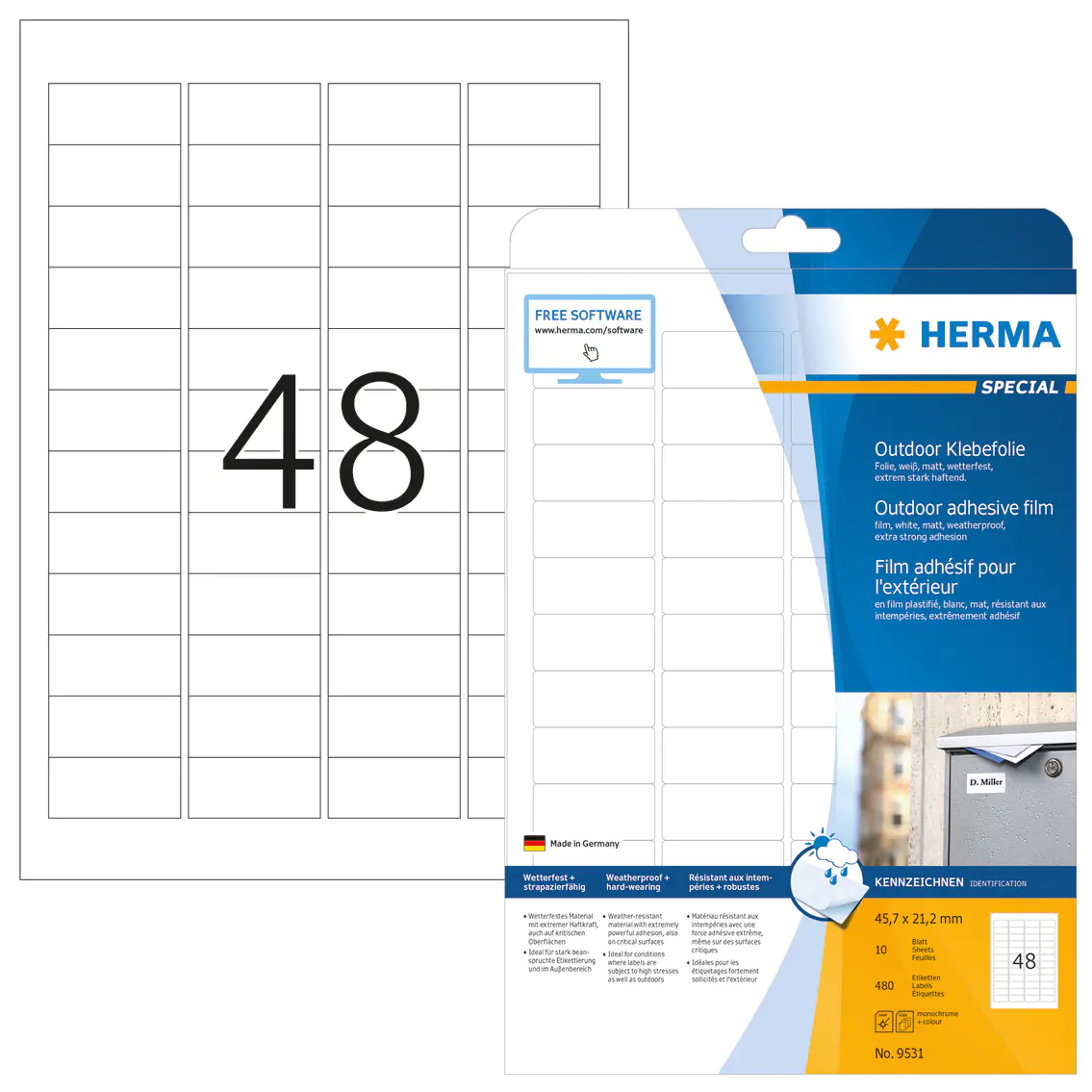 HERMA Outdoor Etikett Special 9531 45,7x21,2mm weiß 480 St./Pack.