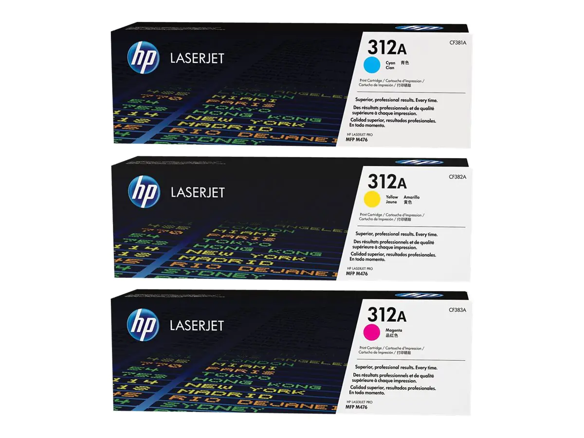 HP 312A - 3er-Pack - Gelb, Cyan, Magenta - Original - LaserJet - Tonerpatrone (CF440AM) - für Color LaserJet Pro MFP M476dn, MFP M476dw, MFP M476nw passt für folgende Geräte: