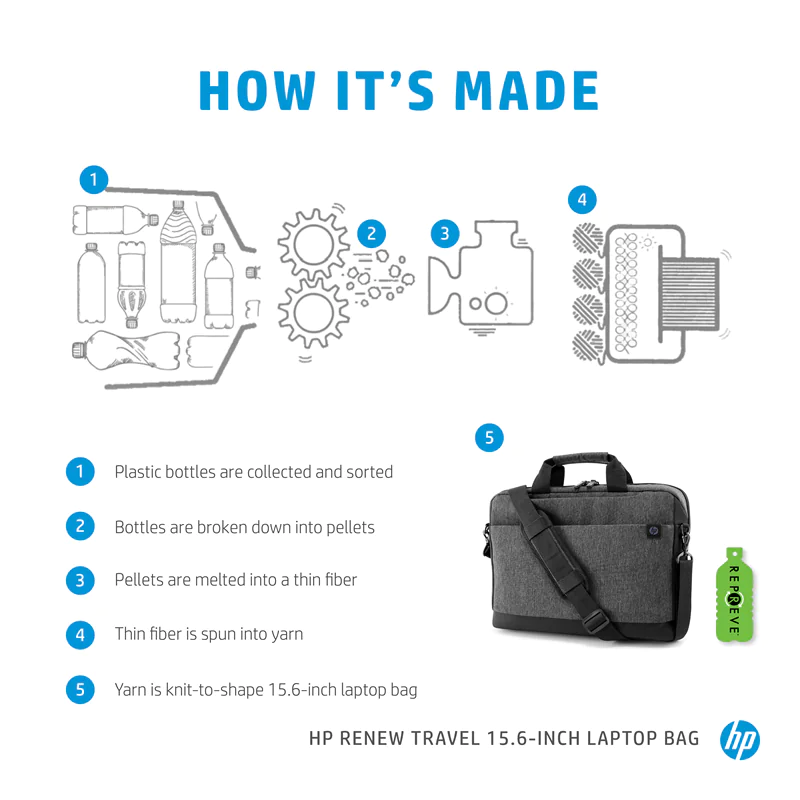 - Tue etwas für die Umwelt – mit einer Tasche aus Recyclingmaterialien, durch die sich das Abfallaufkommen reduziert.