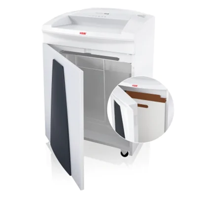 Für mehr Datenschutz am Arbeitsplatz. Der ausgezeichnete Aktenvernichter für die professionelle Datenvernichtung im Großraumbüro für bis zu 8 Personen. Hochwertige Materialien und Qualität "Made in Germany" für Sicherheit und Langlebigkeit. Schneidwellen aus gehärtetem Vollstahl. Kraftvoller Motor ermöglicht dauerhaften Betrieb. Leiser Betrieb minimiert Geräuschentwicklung am Arbeitsplatz. Besonders geringer Stromverbrauch im Stand-by. Papiereinzug mit Überlastungsschutz reduziert Papierstau. Sicherheitselement verhindert unbeabsichtigten Einzug. Multifunktionstaste für intuitive Bedienung. Mobil auf Rollen fahrbar. Komfortables Entnehmen und Leeren des herausziehbaren Mehrweg-Auffangbeutels. Hochwertiger Holzunterschrank mit Tür.