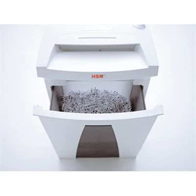 Nähere Informationen zur HSM-Gutscheinaktion finden Sie unter folgendem Link: www.hsm.eu/voucher-promotion. Mit Multifunktionsbedientaste und Reversiertaste. Auto-Reversierung bei Papierstau. Fahrbarer, leistungsstarker Aktenvernichter zum Einsatz am Arbeitsplatz. Besonders geringer Stromverbrauch von 0,1 W im Stand-by. Angenehm dezentes Betriebsgeräusch. Herausnehmbarer Auffangbehälter.