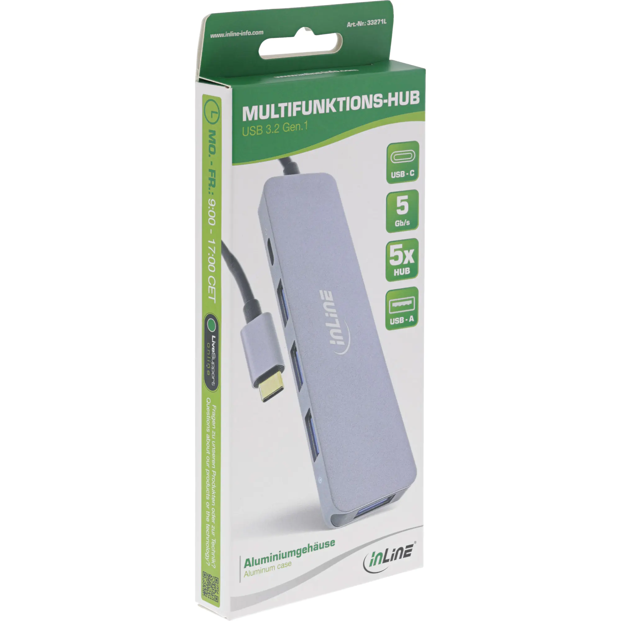 InLine 33271L - Hub - 4 x USB 3.2 Gen 1 + 1 x USB-C (Spannungsversorgung) - Desktop