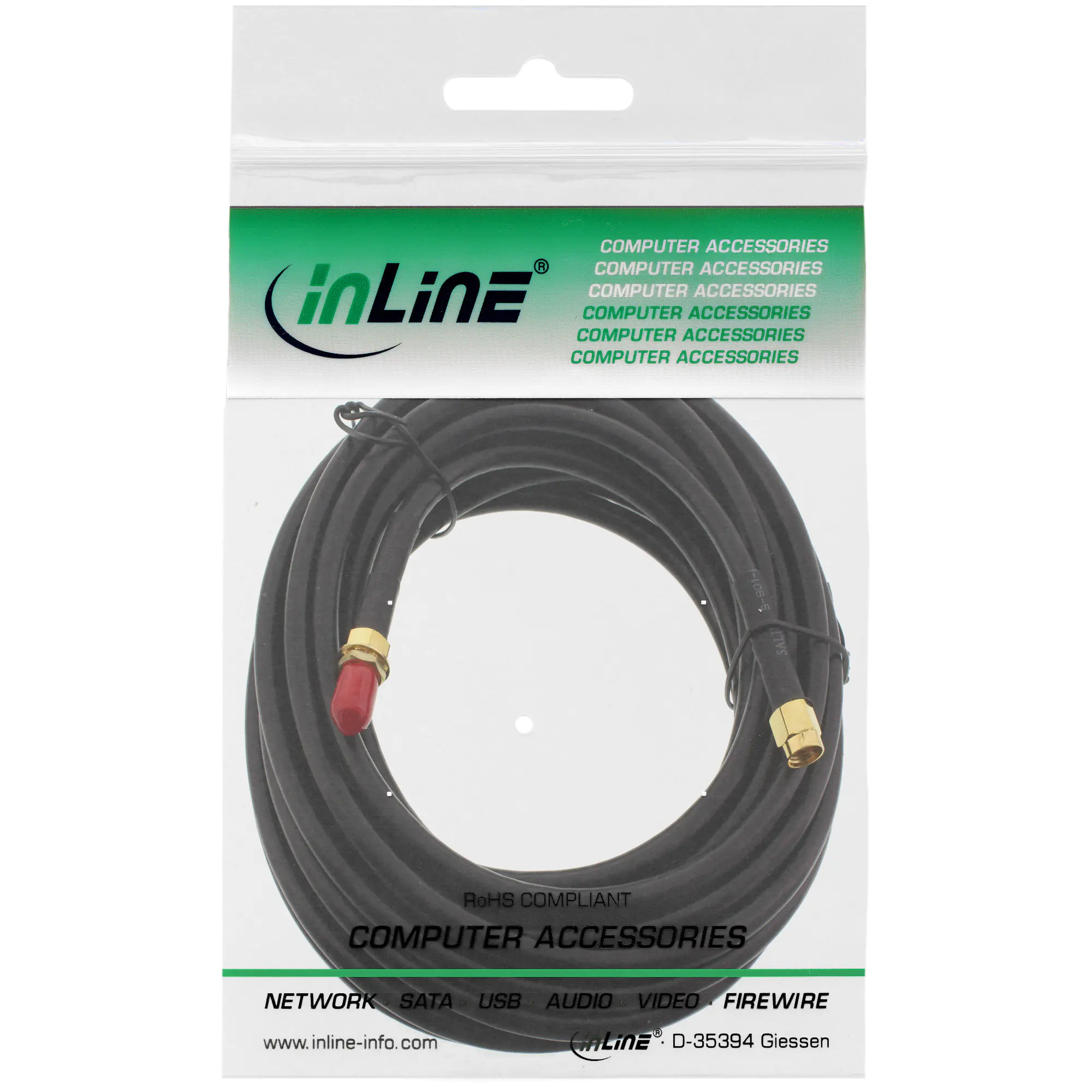 InLine - Antennenkabel - R-SMA (M) bis R-SMA (W) - 5 m - doppelt abgeschirmtes Koaxialkabel - RG-58 - Schwarz