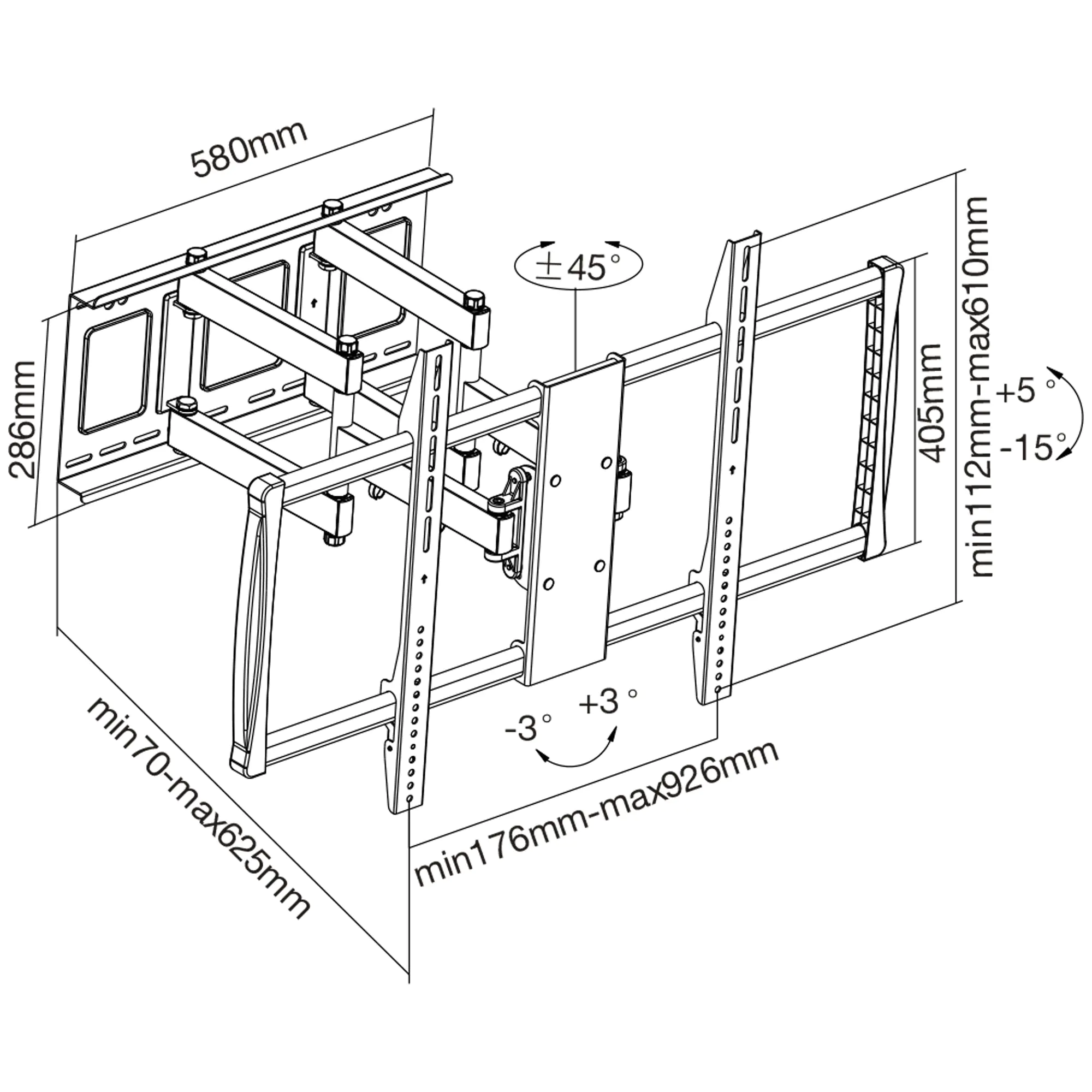 - Neigung: -15° bis +5°, Schwenkbereich: -45° bis +45° (abhängig vom Display)