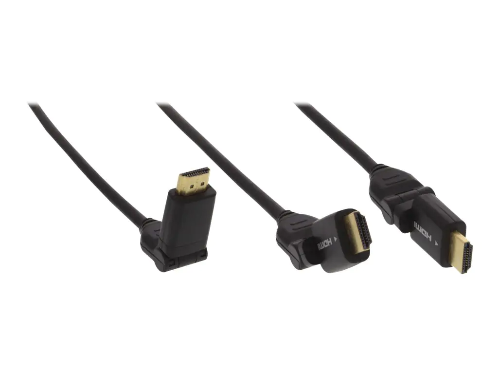 InLine High Speed - HDMI-Verlängerungskabel mit Ethernet - HDMI männlich drehbar/gerade zu HDMI männlich drehbar/gerade - 50 cm - Schwarz - 4K Unterstützung
