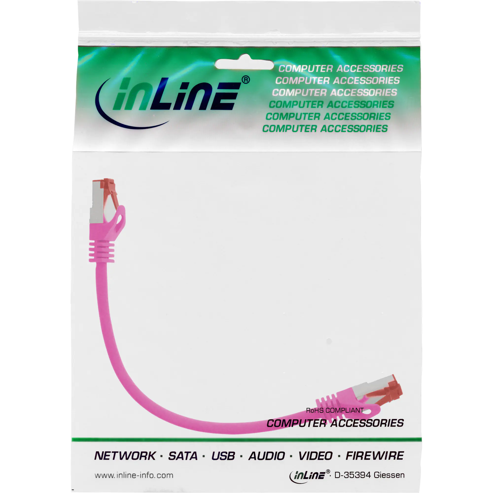 InLine - Patch-Kabel - RJ-45 (M) zu RJ-45 (M) - 25 cm - SSTP-Kabel - CAT 6 - geformt - pink