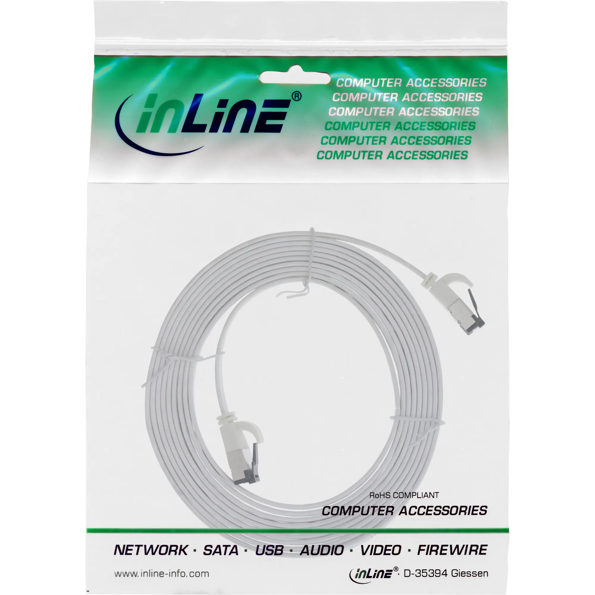 InLine - Patch-Kabel - RJ-45 (M) zu RJ-45 (M) - 3 m - U/FTP, PiMF - CAT 8.1 - halogenfrei, geformt, ohne Haken, verseilt, flach, hauchvergoldete Kontakte - weiß