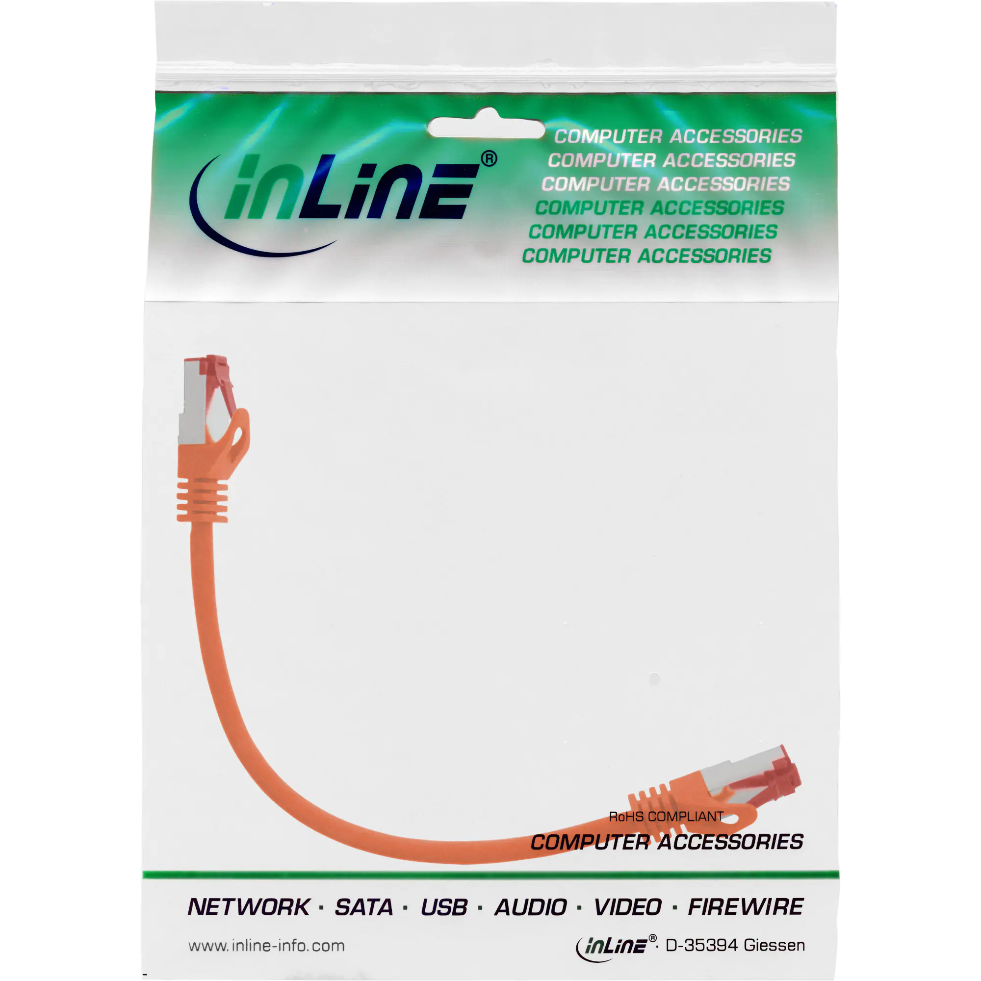 InLine - Patch-Kabel - RJ-45 (M) zu RJ-45 (M) - 30 cm - SSTP-Kabel - CAT 6 - geformt - orange