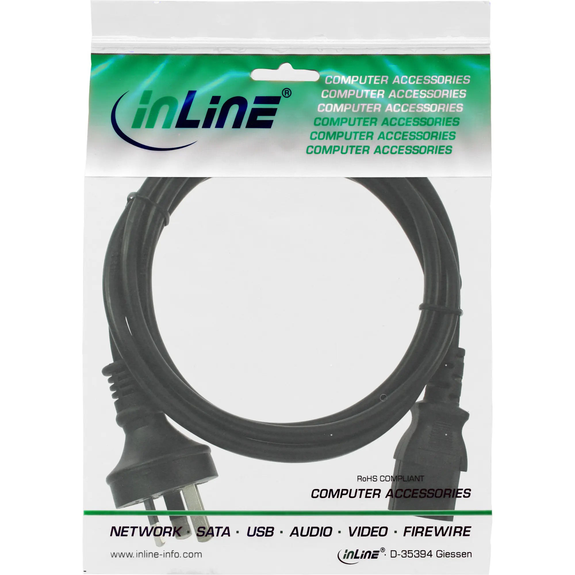 InLine - Stromkabel - AS/NZS 3112 (M) bis IEC 60320 C13 - 5 m - Schwarz - Argentinien, Australien
