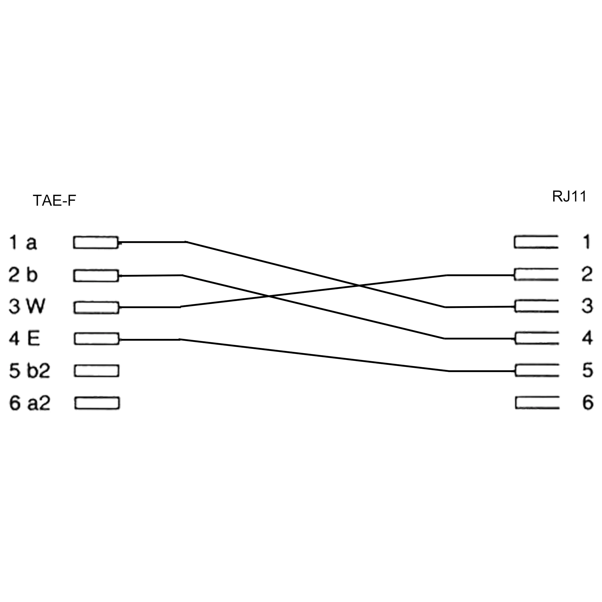 • Belegung (TAE-RJ11): 1a-3, 2b-4, 3W-2, 4E-5