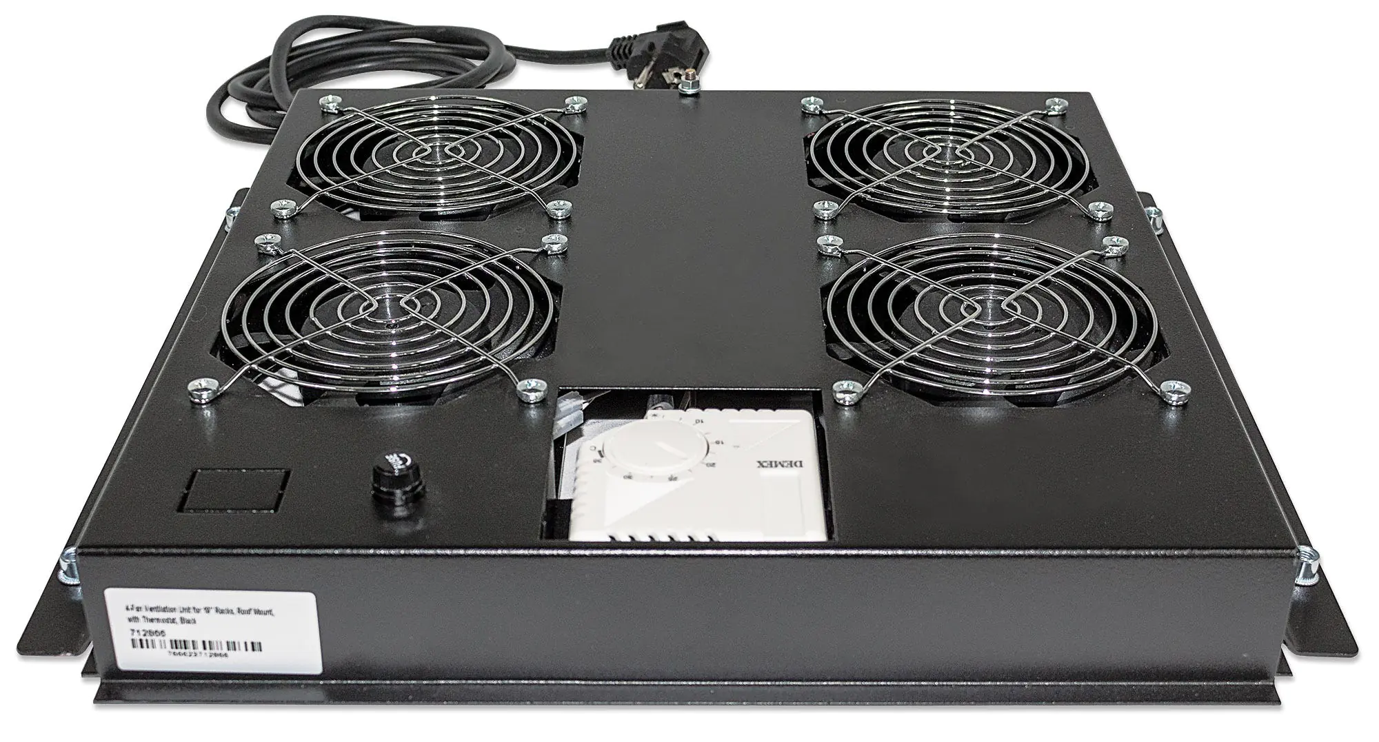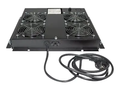 Intellinet 4-Fan Ventilation Unit for 19" Racks, Roof Mount, with Thermostat, Black - Rack-Lüftereinsatz - mit 4 Lüfter, Thermostat - Wechselstrom 220/240 V - Schwarz, RAL 9005 - 48.3 cm (19")