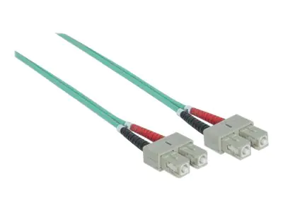 Intellinet Fibre Optic Patch Cable, OM3, SC/SC, 2m, Aqua, Duplex, Multimode, 50/125 µm, LSZH, Fiber, Lifetime Warranty, Polybag - Patch-Kabel - SC multi-mode (M) bis SC multi-mode (M) - 2 m - Glasfaser - Duplex - 50/125 Mikrometer - OM3 - halogenfrei - A