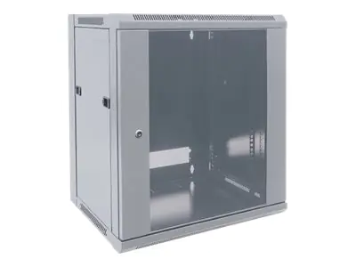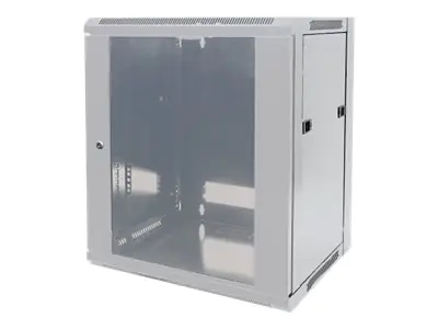 Intellinet Network Cabinet, Wall Mount (Standard), 12U, Usable Depth 410mm/Width 510mm, Grey, Flatpack, Max 60kg, Metal & Glass Door, Back Panel, Removeable Sides, Suitable also for use on desk or floor, 19",Parts for wall install (eg screws/rawl plugs) n
