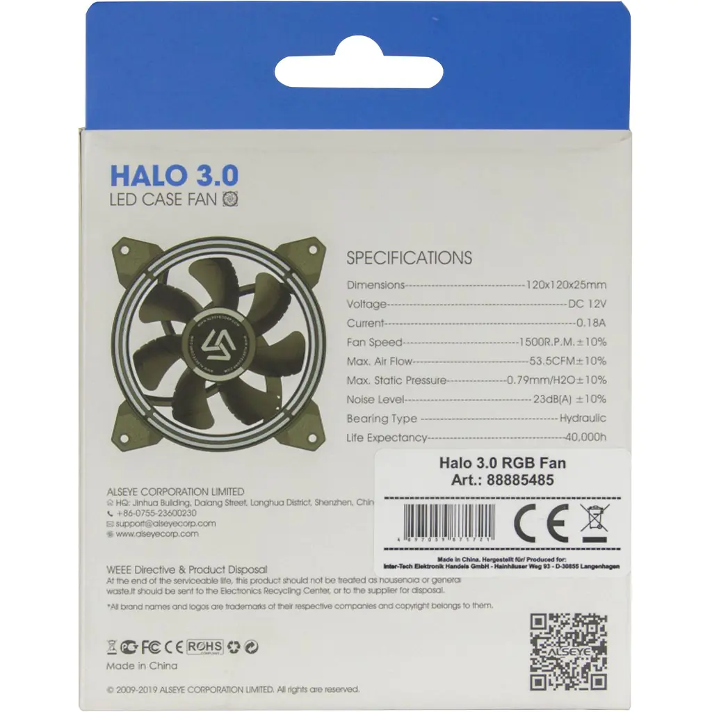| Beschreibung | Inter-Tech ALSEYE Halo 3.0 - Gehäuselüfter 120 mm | |||