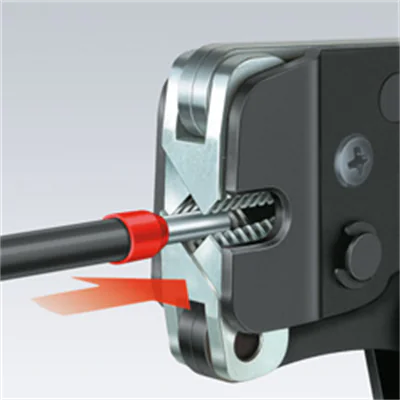 - Frontales Einführen der Aderendhülsen in die Zange